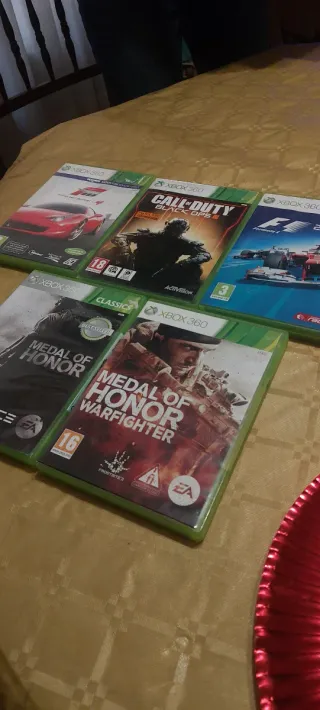 Lote de Xbox 360 con varios juegos, consolas y mandos. Lote Xbox con 2 consolas que funcionan perfectamente con dos mandos en estado satisfactorio pero funcionan perfectamente. La slim no tiene disco duro y la blanca tiene un roto pequeño. Los juegos en estado satisfactorio versiones PAL, todos tienen disco, pero algunos tienen la carcasa mal, a algunos les falta manual o están en diferentes idiomas. pero funcionan perfecto. SE VENDE TODO EN CONJUNTO