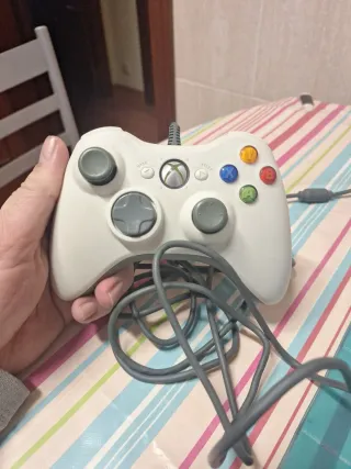 Mando de Xbox 360 en color blanco, diseñado para una experiencia de juego conectada.funciona correctamente , posiblemente valga tb para pc bajando drivers , se entrega solo en persona zona de Vigo , no se envia por correo. - Conexión por cable. - Diseño ergonómico para mayor comodidad. - Botones de acción y analógicos.