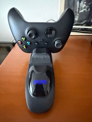 Conjunto de mando, cargador y funda para guardarlo. Sirve tanto para XBOX como para PC. Un uso. Todo por 65€.