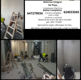 Servicios de reforma integral para pisos y baños. Ofrecemos instalación eléctrica y cocinas completas. - Opciones de suelo a elegir (cerámica o parquet). - Material de mano de obra incluido. - Oferta especial para el mes del amor.
