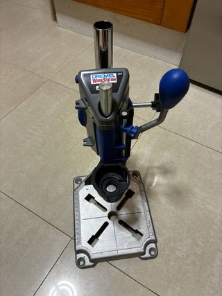 Soporte Dremel Workstation 220 para taladro. - Base metálica robusta con guías de medición. - Columna de soporte vertical. - Palanca de bajada con mango ergonómico. Se vende lo que se ve en la imágen, ya no tengo la caja.