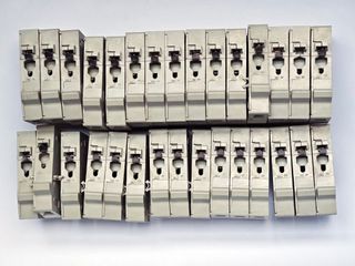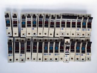 Lote de 30 portafusibles Telemecanique. Algunos tienen las referencias DF6-AB08, DF6-N10 y GK1-CF. Están usados y aparentemente en buen estado, pero no están comprobados. Algunos tienen la sujeción de la parte trasera dañada. Si estás viendo el anuncio es porque está disponible.