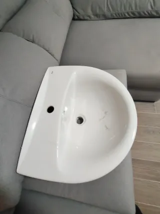 Lavabo de cerámica blanco, diseño moderno y funcional. - Forma angular. - Dos orificios para grifería y desagüe. Precio negociable