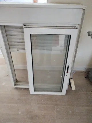Ventana de aluminio blanco - Marco de aluminio. -Persiana independiente Ruedas deterioradas Medidas 2 m ancho x1.2 alto