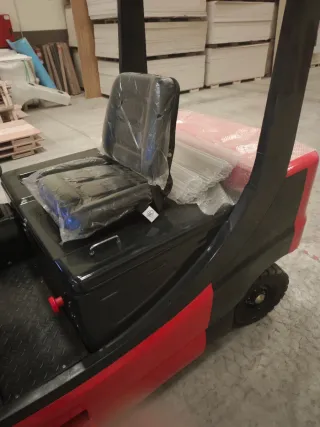 Carretilla elevadora nueva sin estrenar, 2 unidades. - Color rojo y negro. - Diseño robusto para trabajo pesado - Capacidad de carga 2500kg - Mástil triplex 5 metros de altura - Desplazador - Batería litio 300A 80v - cargador rapido