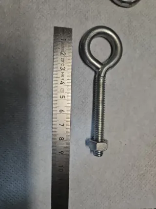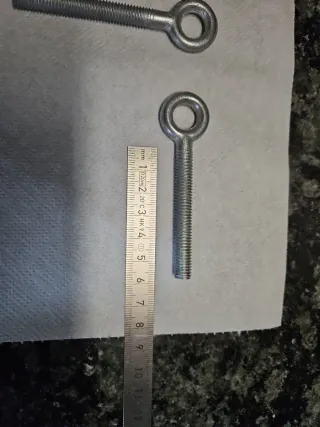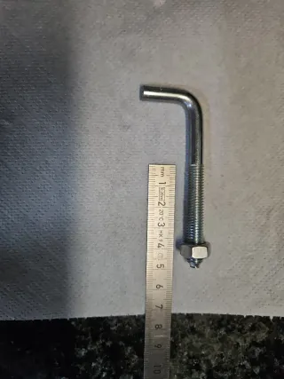 Se venden cuatro ganchos angulares con rosca métrica. - Material metálico. - Diseño en forma de L.