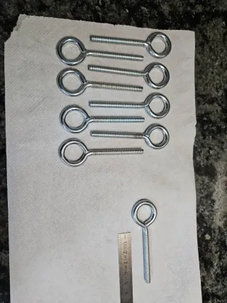 Lote de tornillos metálicos de gran longitud. Son ideales para fijaciones que requieren un buen alcance. - Material: Metal - Color: Plateado - Cantidad: 8 unidades