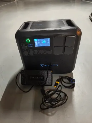 Estación de energía portátil Bluetti AC200Max con panel solar de 120W. La use solo un verano. - Capacidad de batería: 2048Wh, 51.2V 40Ah. - Puerto DC: 10-145V, 15A. - Adaptador: 58.8V, 8A. - Temperatura de descarga: -20-40°C. - Temperatura de carga: 0-40°C. - Humedad de trabajo: 10%-90%. - Salida AC x 4: 220-240V, 2200W Total. - Salida USB-A x 2: 5-12V, 3A x 2, 18W x 2. - Salida USB-A x 2: 5V, 3A, 15W Total. - Salida USB-C x 1: 5-15V, 3A; 20V, 5A, 100W. - Salida encendedor de cigarrillos x 1: 12V, 10A. - Salida DC 5521 x 2: 12V, 10A Total. - Carga inalámbrica x 2: 5/7.5/10/15W x 2 Placa solar portátil totalmente nueva con su funda