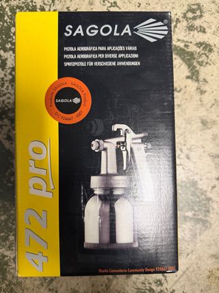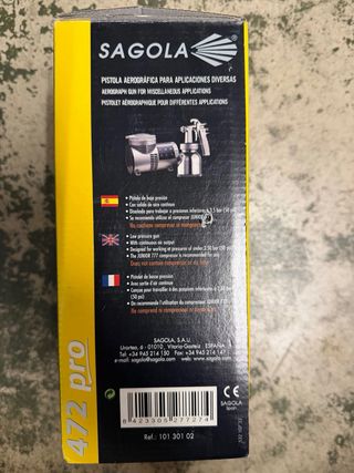 La pistola Sagola 472 Pro es un modelo aerográfico de baja presión y succión diseñado para la aplicación de esmaltes e imprimaciones, caracterizado por su bajo consumo de aire y su facilidad de uso. Detalles del Producto Sagola 472 Pro La Sagola 472 Pro es una pistola presurizada de mezcla interna, lo que le permite conseguir un acabado de calidad incluso con productos de media viscosidad, minimizando al mismo tiempo la niebla de pulverización. Es una herramienta popular en ferreterías y para trabajos de decoración debido a su robustez y rendimiento confiable.