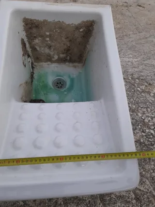 Pila de lavar blanca con zona de secado. - Material: Cerámica. - Color: Blanco. - Incluye desagüe.