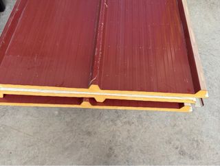 Se venden chapas sándwich nuevas, sin ningún tipo de uso. Ideales para cubiertas o fachadas.miden 3 metros por 1 de ancho rojas por encima y blancas por debajo no se an usado - Material: Acero. - Color: Rojo. - Acabado: Liso.