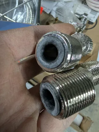 Dos conectores excéntricos (en forma de S) para fontanería/grifería. Rosca de 1/2 a 3/4"