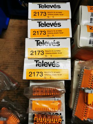 A la venta por unidades o por lotes, regletas de conexión para telefonía básica de 5 y 10 pares cobre trenzado de la marca Televés. Además carátulas identificación para 10 pares. Elementos de conexión con posibilidad de desconexión para realizar medidas hacia ambos lados sin levantar las conexiones. Permite el paso de corriente Entrada-Salida y viceversa. - Regletas de 5 pares. TLV 2173 - Regletas de 10 pares. TLV 2172 - Carátulas identificación 10 pares. TLV 2181.