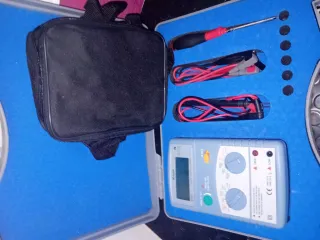 Medidor de aislamiento digital Kaise MS5201. - Pantalla LCD. - Botón de prueba y bloqueo. - Selector de rangos de medición (200MΩ, 2000MΩ). - Indicador de alto voltaje. - Incluye cables de conexión.