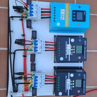 Se venden tres reguladores de carga solar MPPT. 1 de 200Am,1 de 150Am y 1 de 120Am .PV 100 VATIOS - Voltaje: 12V/24V/36V/48V automático. -Modelo 200A -Modelo 150A - Modelo 120A. CABLEDO 16 MM SOLAR INIFUGO. 6 AUTOMATICOS 63A, 6 RELOJ ESTADO Y CARGA BATERIAS E INDICADOR DE PV. INSTRUCCIONES EN ESPAÑOL CON FOTOS. TE LO PROGAMO SEGUN LO NECESITAS. SOPORTA MAS DE 15.000 VATIOS EN PANELES. MAS DE 20 PANELES. Imprescindible para sistemas aisladas o cargar bateria del sistema solar Mas información por whatsapp. - Compatibles con baterías LiFePO4.AGM.ACIDO.GEL. KIT MONTADO TAL CUAL LAS FOTOS.LO PUEDO MONTAR CON INVERSOR Y BATERIAS.