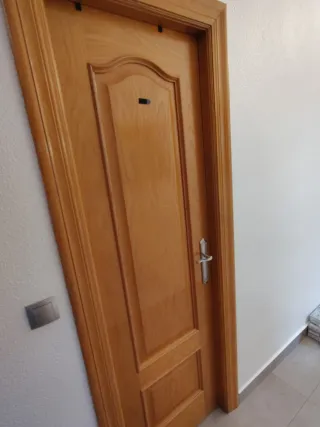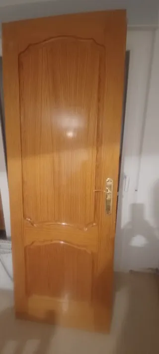Puerta de madera para interiores con un diseño clásico . El precio es por unidad se puede negociar por lote de todas. - Material: Madera. - Color: Tono madera natural. - Diseño: Panelado con molduras. - Herraje: Manilla dorada.