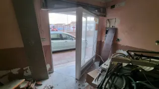 Puerta de aluminio para exterior, ideal para la entrada de un bar o local comercial. - Material: Aluminio. - Tipo: Puerta de entrada. También persiana metálica