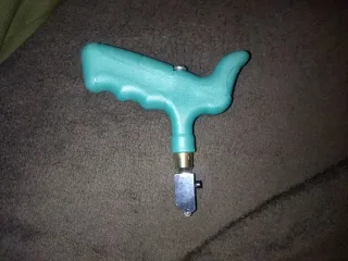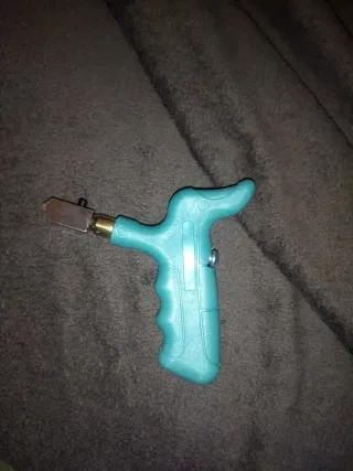 Herramienta manual para cortar vidrio con diseño de pistola. - Mango ergonómico para un agarre cómodo. - Rueda de corte de metal. - Mecanismo de ajuste.