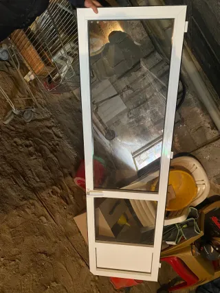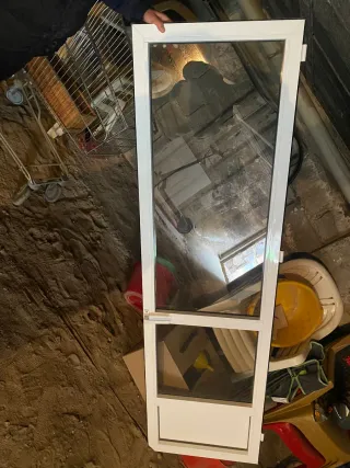 Puerta de cristal Climalit. - Marco de aluminio blanco. - Tirador blanco. 87cm de ancho con margo y largo 255cm 2 disponibles, 100 euros cada una