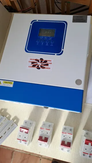 Inversor híbrido solar de 5kW WIFI.CONTROL BMS con tecnología LiFePO4.GEL AGM ACIDO Ideal para instalaciones fotovoltaicas AISLADAS.KIT 3 REGULADORES MPPT DE 120 AM,NECESARIO PARA CARGAR BATERIAS,TAL CUAL LAS FOTOS.EL INVERSOR LO PUEDO ENVIAR MONTADO CON CABLEADO Y AUTOMATICOS EN UN TABLERO. TAL CUAL LAS FOTOS 1.350€ PONER BATERIAS Y PANELES ADECUADOS PARA VIVIENDAS AISLADAS (NO TODAS LAS PLACAS SIRVEN)Y A FUNCIONAR. MAS INFORMACION ENVIA UN WHATSAPP. - Pantalla LCD - - Puerto USB - Certificación CE. También puedo poner baterías LiFePO4 10.000 ciclos 360Am con bms.