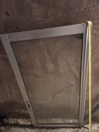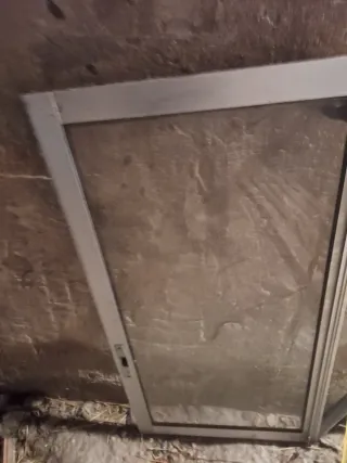 Ventana corredera de aluminio, ideal para espacios amplios. De.dos.hojas eso.si a uma.le falta el cristal las medidas en las fotos nonse ven miy biem tengo que medir otra vez - Marco de aluminio. - Malla de protección.