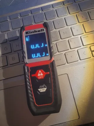 Medidor de distancia láser Einhell. La pantalla tiene un problema de visualización y solo muestra la mitad de las líneas, no se cual sea el problema pero es para alguien que pueda repararlo.