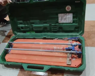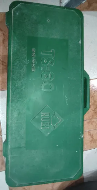 Cortadora de azulejos Rubi TS-60 en su maletín. En perfecto estado , signos de desgaste por el uso domestico. - Maletín de transporte verde. - Guías metálicas de acero inoxidable - Base robusta de color naranja. - Sistema de corte limpio y preciso. punta de diamante en perfecto estado , para cortar azulejos o baldosas con precisión.