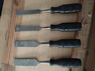 Cuatro formones Nooitgedagt. Acero Sueco Medidas: - Formón de 26 mm - Formón de 22 mm - Formón de 20 mm - Formón de 16 mm