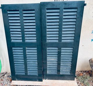 Conjunto de dos contraventanas mallorquinas de madera, ideales para dar un toque rústico a tu hogar. - Fabricadas en madera. - Diseño de lamas orientables.