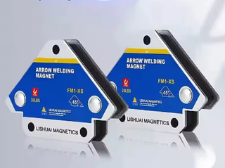 Se venden dos escuadras magnéticas para soldadura, modelo FM1-XS. - Capacidad de 12 kg. - Permiten ángulos de 45°. - Marca LISHUAI MAGNETICS.