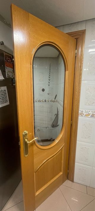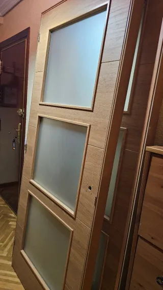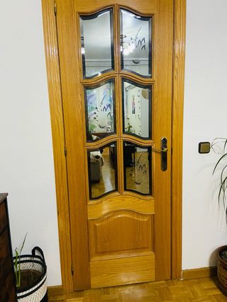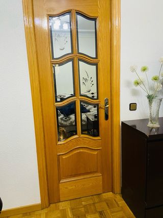 Puerta de interior de madera maciza con paneles de cristal. - Modelo Berna roble miel de Leroy Merlin - Anchos de 72,5 y 82,5. - Una ligera imperfección, casi imperceptible. Mejor ver. - El precio es por puerta. Las dos serían 300. - Se venden juntas o por separado