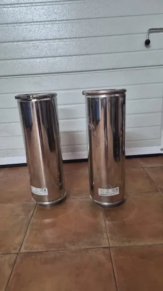 Se venden dos tubos para chimenea fabricados en acero inoxidable. - Material: Acero inoxidable. - Diseño cilíndrico.