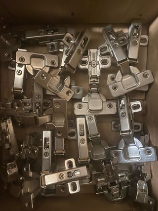 Lote de 20 bisagras de la marca Salice. Fueron instaladas en armarios de vivienda de nueva construcción, que se ha modificado. No tienen uso real. Piezas metálicas para mobiliario. - Marca: Salice - Cantidad: 20 unidades