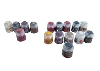 Lote de pinturas Citadel 16 Botes Los 11 de la derecha Nuevos Los 5 de la izquierda al 90% llenos y el crema al 80% - Variedad de colores. Azul Citadel 6