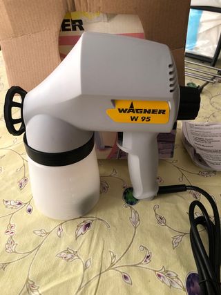 Pistola de pintura Wagner W95 en perfecto estado. Es una herramienta eléctrica, ideal para pintar con rapidez y facilidad. - Modelo W95. - Incluye un recipiente de pintura. - Funciona con electricidad.