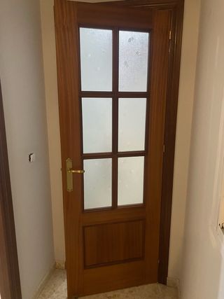 Se venden en Alcalá del Río, Sevilla, puertas semi nuevas de paso de madera con su marco, sus tapajuntas y herrajes, para vivienda. Son ideales para cualquier estancia del hogar. 2 🚪acristalada de 203 X 72.5, una de apertura derecha y otra izquierda. 1 🚪 acristalada de corredera 203 X 80. 1 🚪 203 X 72.5, apertura izquierda. 2 🚪 203 X 62.5, 1 apertura derecha y la otra de apertura izquierda. - Diseño clásico de dos paneles. - Acabado en tono madera natural. - Tiradores dorados. @ ULTRA SÚPER SÚPER ÚLTIMA OFERTA @ TODAS LAS PUERTAS CON SUS RESPECTIVOS MARCOS Y SUS JAMBAS, POR TAN SÓLO 35€ C/U
