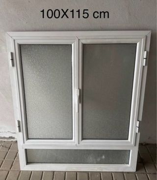 Ventana de aluminio con medidas de 100x115 cm. Ideal para tu hogar. - Marco de aluminio blanco. - Vidrio esmerilado. - Dos hojas abatibles. - Parte inferior fija.
