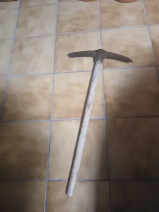 Herramienta de obra tipo pico bellota. - Mango de madera. - Cabeza de metal.