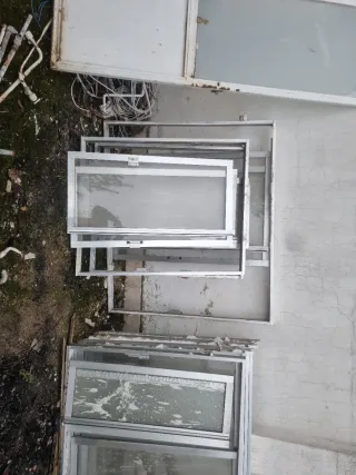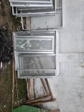15 e la ventana completa, mas ventanas se puede valorar precio, con su cerc. Conjunto de ventanas antiguas de aluminio. 3 ud 1,25x1,10 1ud 0,90x1,10 1ud 1,40x1,20 1ud 1x1,10 1ud 0,90x1,04 Para portadas o cerrmientos de lo mas baratitos - Marcos de aluminio. - Cristales incluidos.