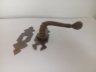 Conjunto de bocallave y manivela derecha. Funciona perfectamente. - Material de latón envejecido. - Diseño ornamental.