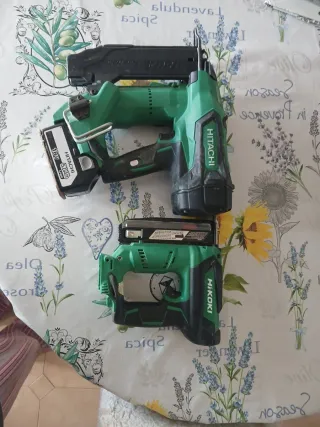 Se venden dos clavadoras de batería, una marca Hitachi 1.2 y otra HiKOKI 0.6. Ambas funcionan con baterías de 18V. - Clavadora Hitachi con batería de 18V 5.0Ah Li-ion. - Clavadora HiKOKI. - Ambas herramientas son de color verde y negro. VENTA SOLAMENTE EN PERSONA