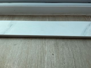 Pieza de porcelánico con diseño tipo mármol en color blanco. Ideal para proyectos de construcción o renovación. Tambien para baldas o encimeras - Acabado imitación mármol. - Color blanco. - Betas de color gris Medidas Largo: 199,4 cm Ancho: 8 cm Alto: 1,1 cm