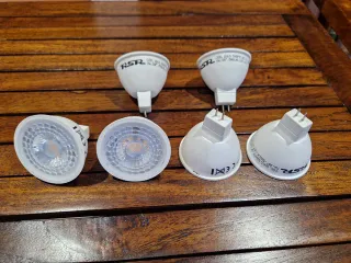 Foto 1: 6 Focos LED bajo consumo 3000K 7W 500lm 38º MR16 Foto 2: 9 Focos LED bajo consumo 2700-3000K 35º MR16 Foto 3: 10 Focos LED bajo consumo 3000K 7W 35º MR16 Foto 4: 8 Focos LED bajo consumo 2700K 8W 621lm 36º MR16 Foto 5: 10 Focos LED bajo consumo 2700K 6W 470lm 35º MR16 Total 43 focos LED MR16 para sustituir los antiguos incandescentes uno por otro sin cambios en la instalación Foto 6: 9 Focos LED bajo consumo 2700-3000K 35º GU10 Total 9 focos LED GU10 para sustituir los antiguos incandescentes quitando el transformador, y cambiando el conector de conexión Si tienes incandescentes, prueba estos por poco dinero.