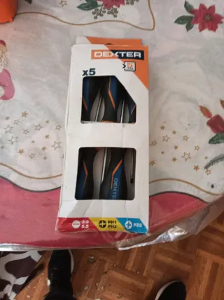 Set de 5 destornilladores de la marca Dexter. - Incluye destornilladores de diferentes tamaños y tipos. - Mango ergonómico para un mejor agarre. - Punta de precisión para trabajos delicados.