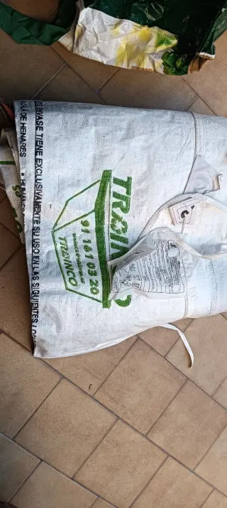 Lote de cuatro telesacos de la marca TRAINCO. Son sacos de material resistente, ideales para diversos usos. - Marca: TRAINCO - Cantidad: 4 unidades - Material: Tejido de polipropileno - Impresión: Logo y datos de contacto de la marca