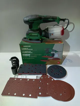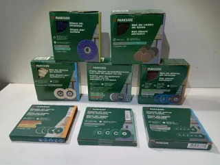 Productos nuevos en su Caja 📦 El lote incluye: 1. Radial con 2 baterías de 4ah PARKSIDE ( no incluye Cargador) 2. Lote de 8 cajas variados de discos para radial