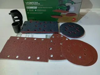 Producto Totalmente Nuevo 📦 Lote muy completo de accesorios para la Radial / Amoladora Diametro 115mm 1. Disco de limpieza( 1 unid ) 2. Set de vellón de lijado ( 6 unid ) 3. Set de discos de pulido ( 2 unid ) 4. Plato lijador autoadherente con set de papel de lija ( 12 unid ) 5. Set de discos de láminas ( 4 unid ) 6. Discos de corte de diamante ( 4 unid ) 7. Discos de corte para aluminio ( 4 unid ) 8. Discos de corte para metal ( 11 unid ) Lidl , percusión, radial, pistola, sierra caladora circular láser , compresor, llave , atornillador, atornilladora, soldar , aparato, pistola, grapadora, lijadora herramienta compresor