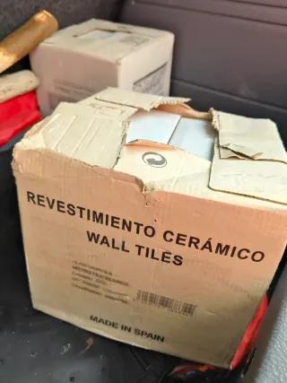 2 Cajas con 2m cuadrados. Lote de azulejos de color blanco, con un tamaño de 10x20 cm. - Diseño liso y moderno. - Acabado brillante.