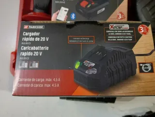 Cargador de baterías Parkside 20V 4,5A Nuevo en su Caja 📦 - Compatible con baterías X20V Team. - Corriente de carga: 4,5 A. - Longitud del cable: 2 m. - Tiempo de carga: 30 min (2 Ah), 60 min (4 Ah), 120 min (8 Ah). Lidl , Bosch, Maquita, Dewalt, Stayer , Inverter , Hilti , Worx , Metabo , Einhell , carpintero, carpintería, batería, pintór , pintura , reforma, obra , metal , percusión, radial, amoladora, sierra caladora circular láser , compresor, llave , atornillador, atornilladora, soldar , soldadura, aparato, pistola, grapadora, lijadora herramienta compresor, ingletadora, impacto, fresadora, broca 8Ah Smart 4Ah