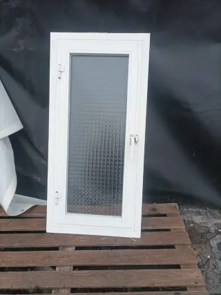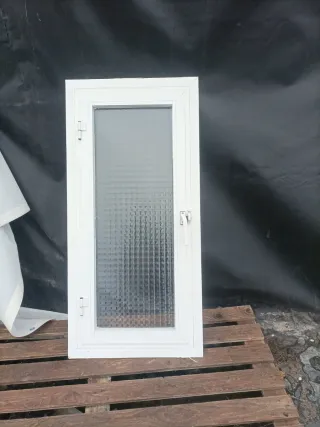Ventana de aluminio para baño. - Marco blanco. - Vidrio texturizado.